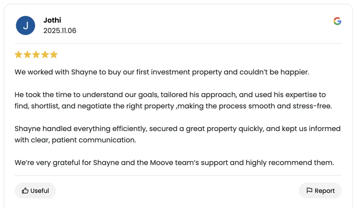 Over the last 12 months as a Buyers Agent, I've helped dozens of busy professionals secure their ideal investment properties with a 98% success rate and an average of just 38 days from engagement to settlement.
